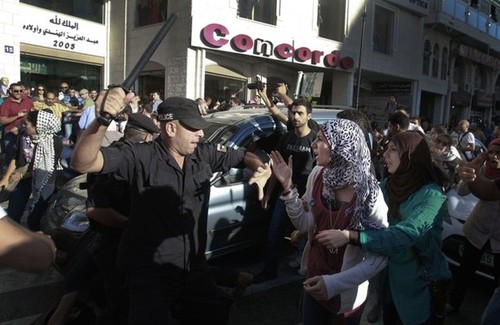 The Palestinian Authority in recent months have reached new heights of authoritarianism in the West Bank. Over the weekend scores of protesters were attacked and beaten by uniformed and plain clothes PA security forces. The protesters were marching towards the PA headquarters in Ramallah, to protest against President Abbas’ planned meeting with Israeli Vice Premier Shaul Mofaz and to call an end to negotiations with Israel, before being stopped by security forces. In the past few weeks around 200 people have been detained by the PA in their campaign to cut down on the illegal arms trade in the West Bank. Time is running out for the PA. Many Palestinians are beginning to view them as nothing more than Israeli puppets. While they are essentially in control of certain parts of the West Bank, the PA’s real power is derived from Israel. The Israelis are the ones allowing for the PA to operate. Abu Mazen is beholden to the Israeli government. And for all his rhetoric bashing Israel, he still caries out their orders with regards to security in the West Bank. The PA’s claims about economic prosperity have also not swayed the population into supporting them with out question. More and more Palestinians view the economic prosperity as only benefiting the corrupt PA’s cronies. If the Arab Spring ever hits the West Bank there is no telling what the ramifications could be. But if there is a country that is ripe for the Arab Spring it is Palestine. With the Israeli occupation bordering on ethnic cleansing, and the PA tightening its grip on society, the Palestinian people are reaching their breaking point.